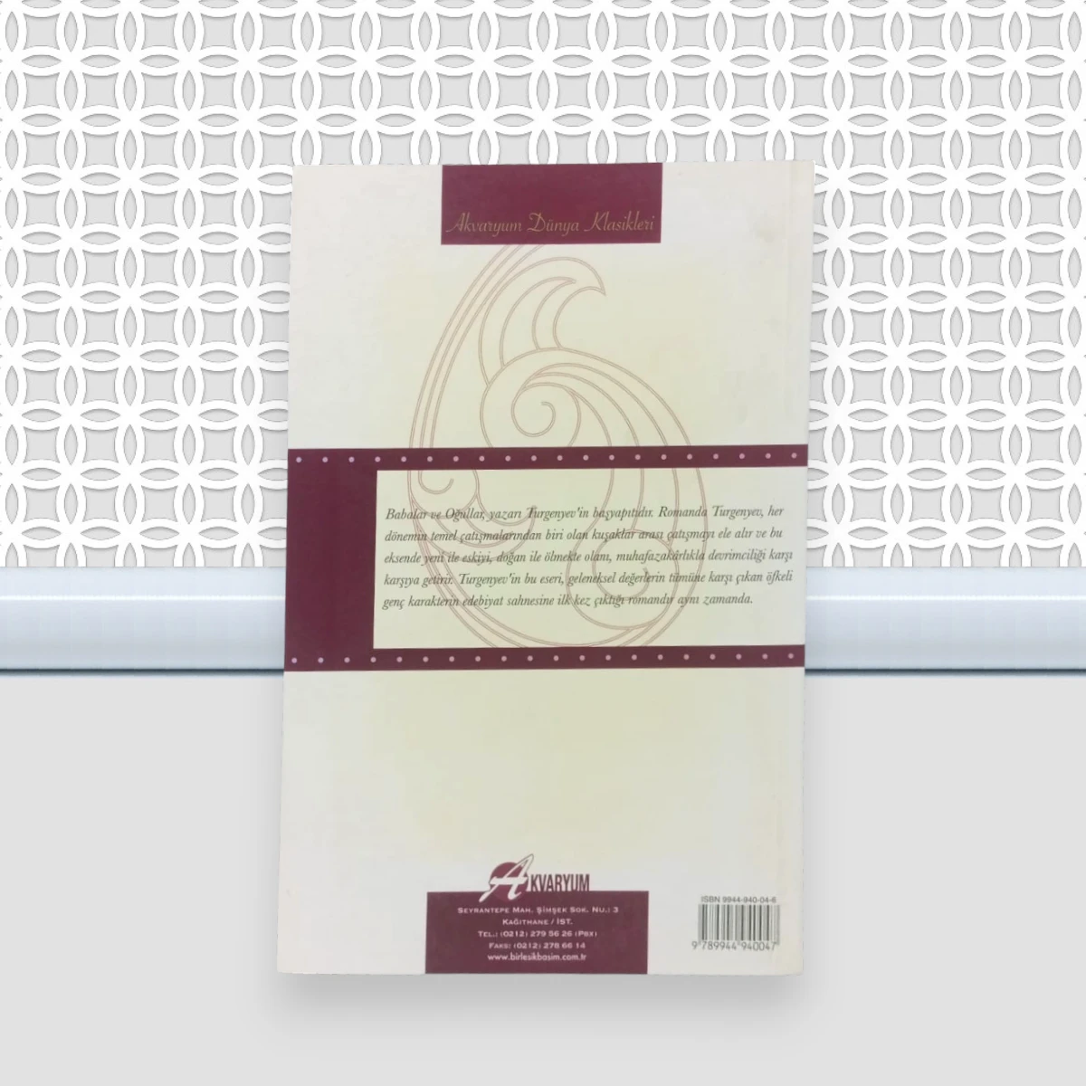 Babalar Ve Oğulları; Turgenyev'in kaleme aldığı, Akvaryum Yayınları tarafından yayınlanan, 317 Sayfa, 2. Hamur Karton Kapak, 13,5x21 cm Roman boy