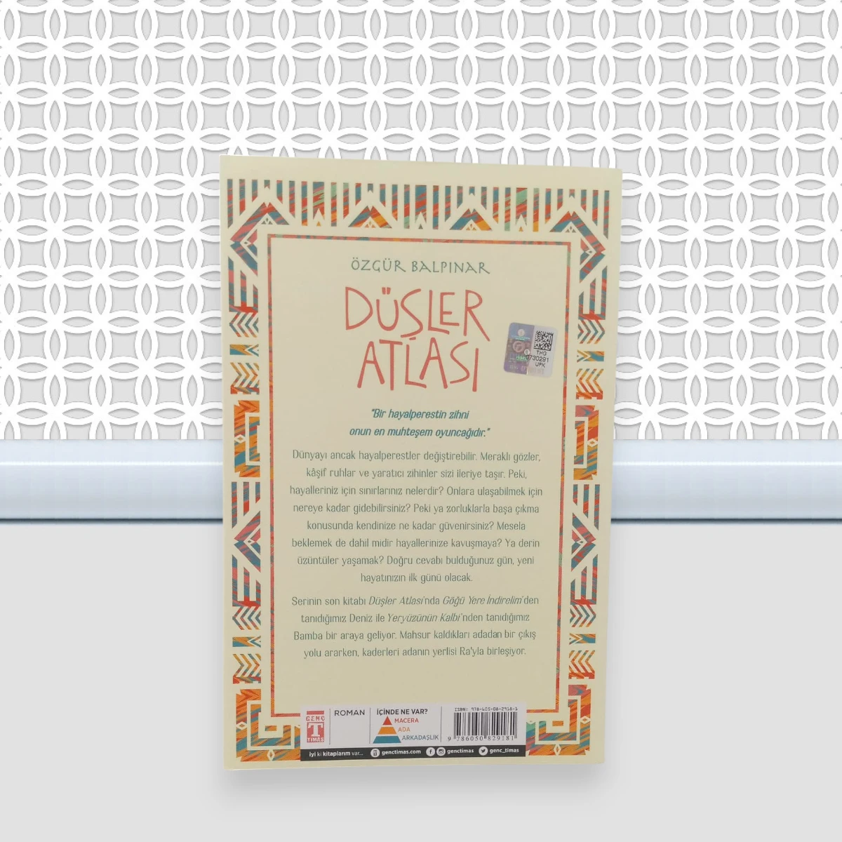 Düşler Atlası; Özgür Balpınar'ın kaleme aldığı, Genç Timaş Yayınları tarafından yayınlanan, 158 Sayfa, 2. Hamur Karton Kapak, 13x20,5 cm Roman boy