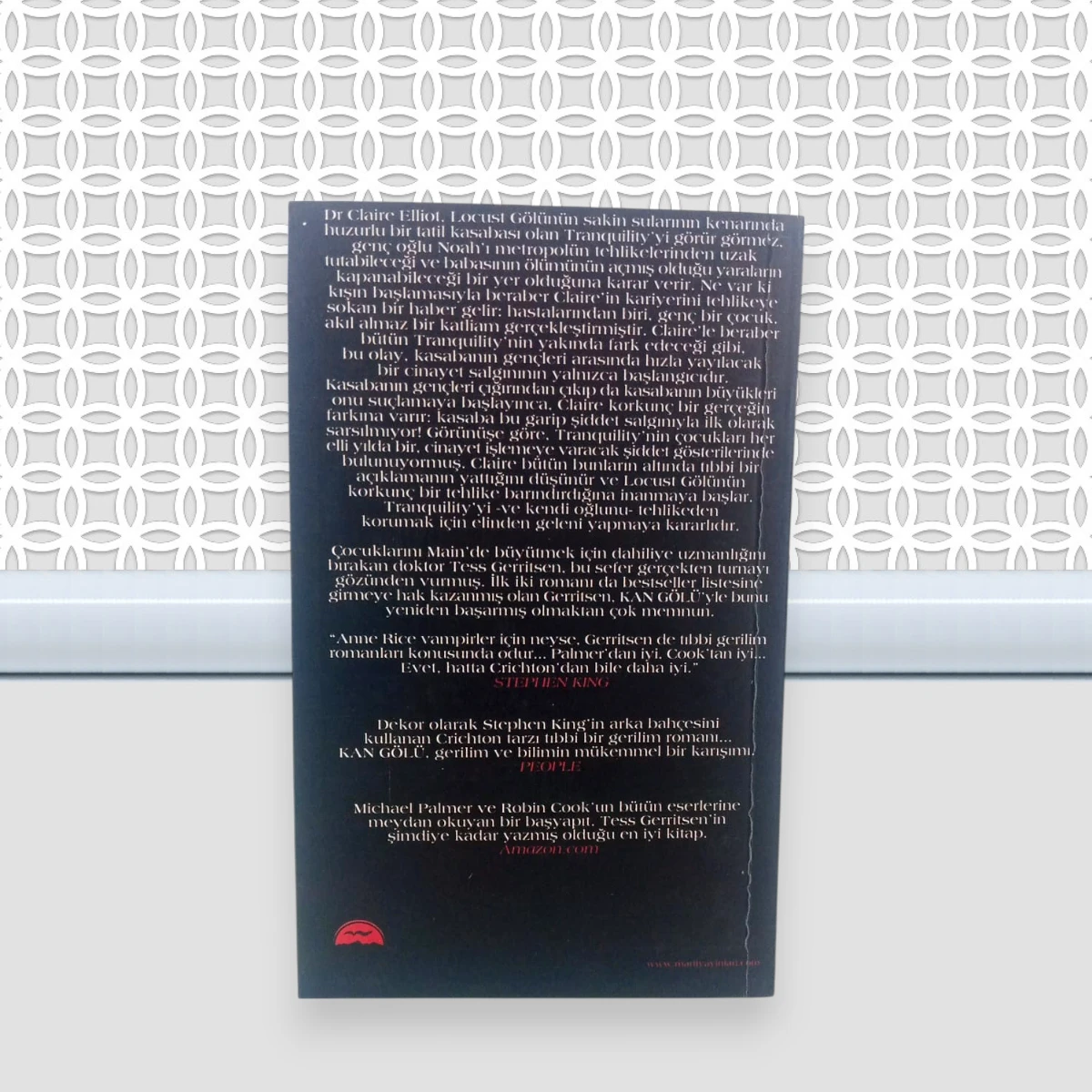 Kan Gölü; Tess Gerrıtsen'in kaleme aldığı, Martı Yayınları tarafından yayınlanan, 490 Sayfa, 2. Hamur Karton Kapak, 10,5x16,5 cm Çanta boy