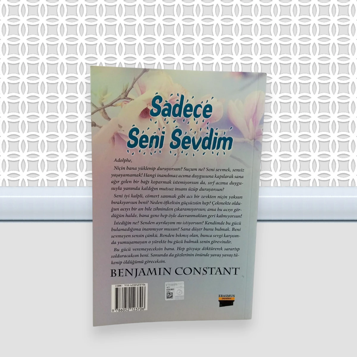 Sadece Seni Sevdim; Benjamın Constant'ın kaleme aldığı, Erasmus Yayınları tarafından yayınlanan, 205 Sayfa, 2. Hamur Karton Kapak, 13,5x21 cm Roman boy