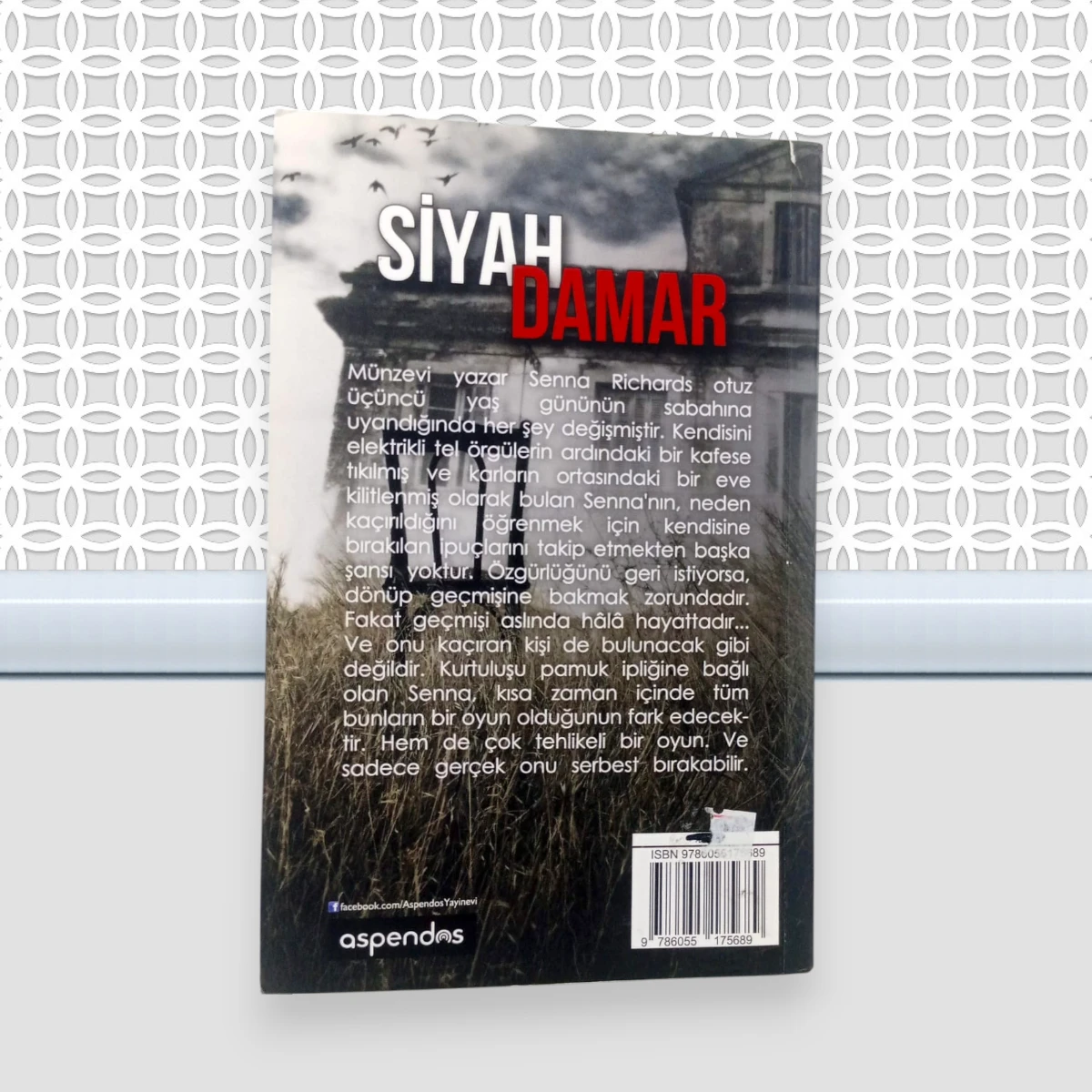 Siyah Damar; Tarryn Fısher'in kaleme aldığı, Aspendos Yayınları tarafından yayınlanan, 216 Sayfa, 2. Hamur Karton Kapak, 13,5x21 cm Roman boy