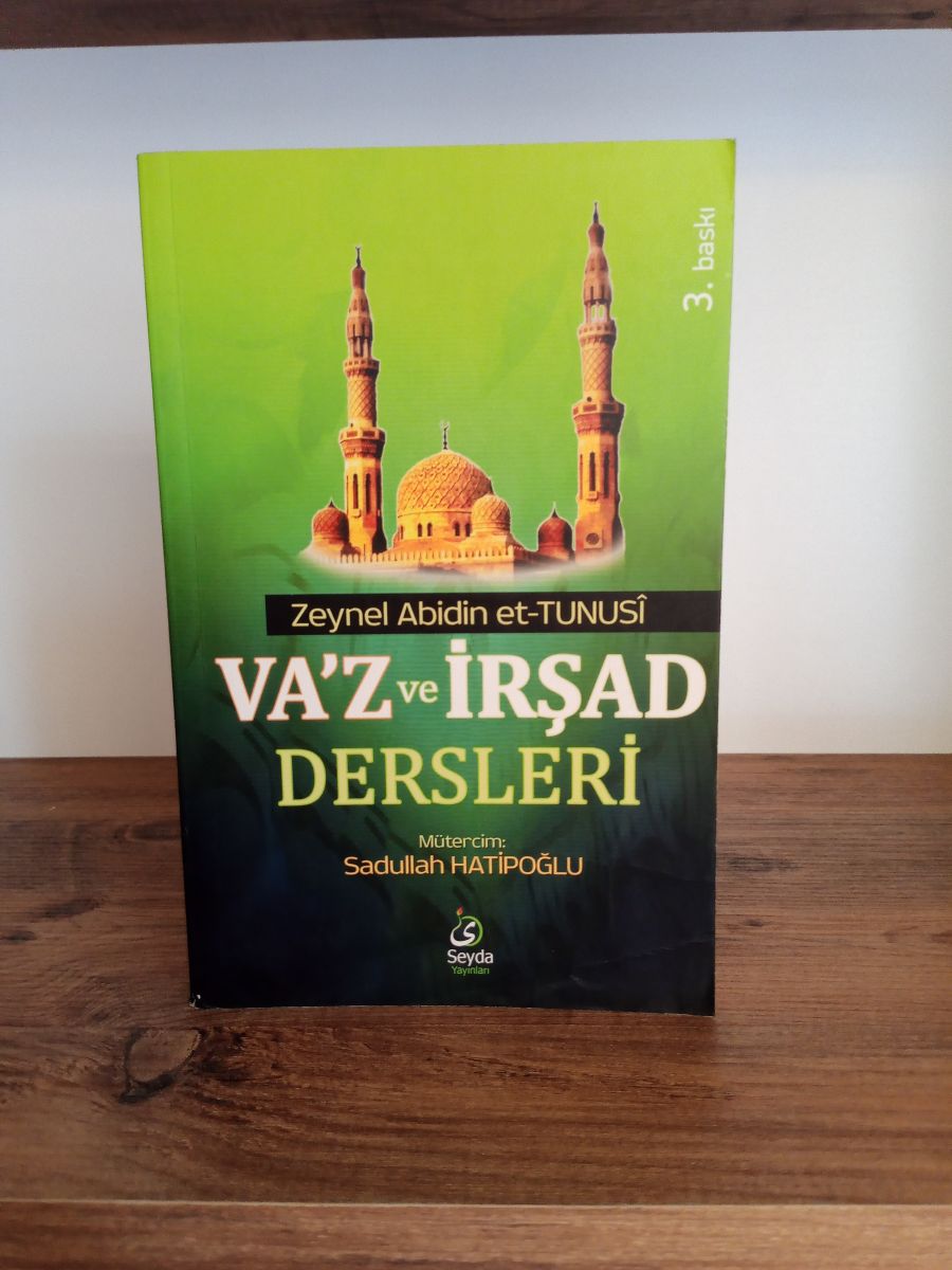 Va’z ve İrşad dersleri; Zeynel Abidin Et-Tunusi’nin kaleme aldığı, Sadullah Hatipoğlu’nun Tercüme ettiği, Seyda Yayınları tarafından yayınlanan, 314 Sayfa, Karton Kapak, 13,5x21 cm Roman boy, 27 TL değerinde - 2.El Eserdir.
